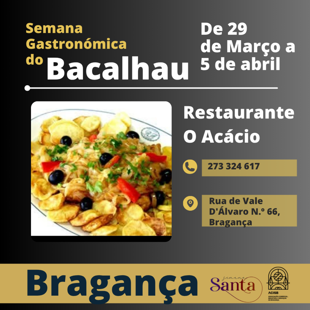 Nas edições anteriores a ACISB quis promover um prato identitário do concelho, o “Bacalhau à Bragança”, sendo na altura condição de participação que todos os restaurantes apresentassem este prato. Muitos mantém o prato na ementa todo o ano, mas nesta edição da Semana Gastronómica do Bacalhau, cada estabelecimento aderente tem total liberdade de apresentar e destacar o prato que entender.